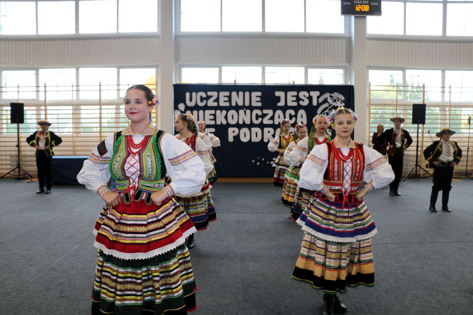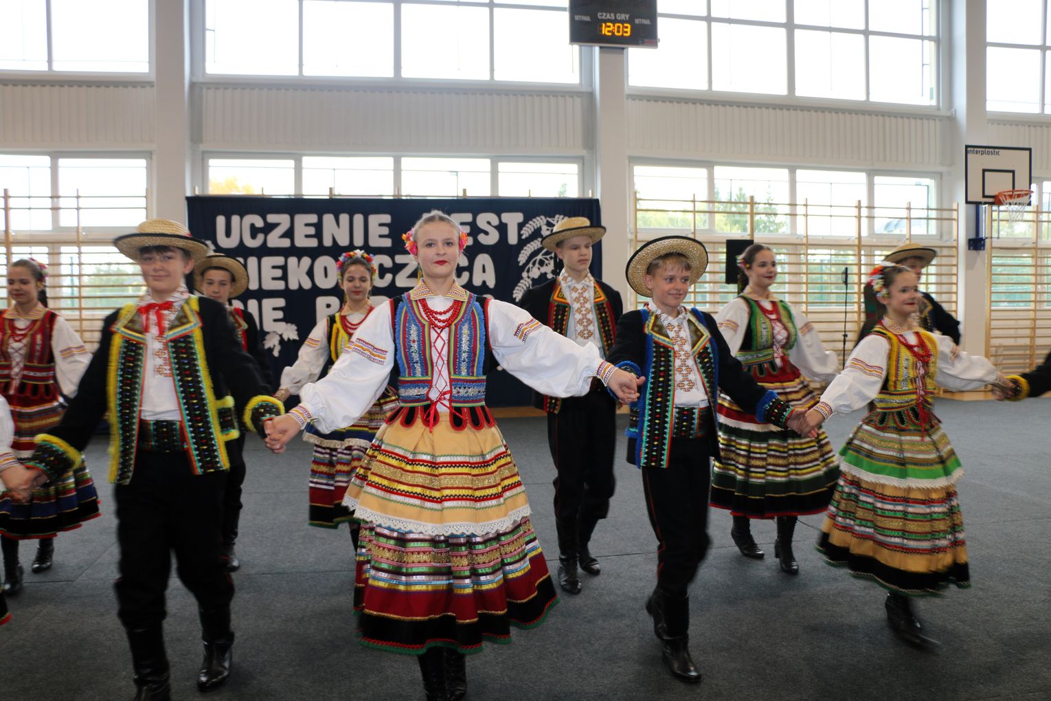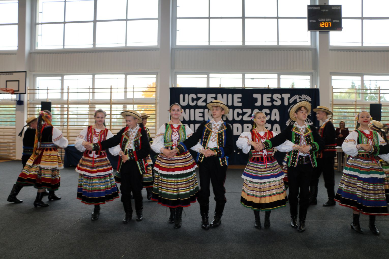 Młodzież i dzieci, przygotowane przez swoich wychowawców, uświetniły wydarzenie poprzez znakomite występy artystyczne - zarówno wokalne, jak i taneczne. Goście zgromadzeni na sali gimnastycznej nagrodzili młodych artystów zasłużonymi brawami, gdyż zaprezentowali oni naprawdę wysoki poziom talentu i umiejętności.