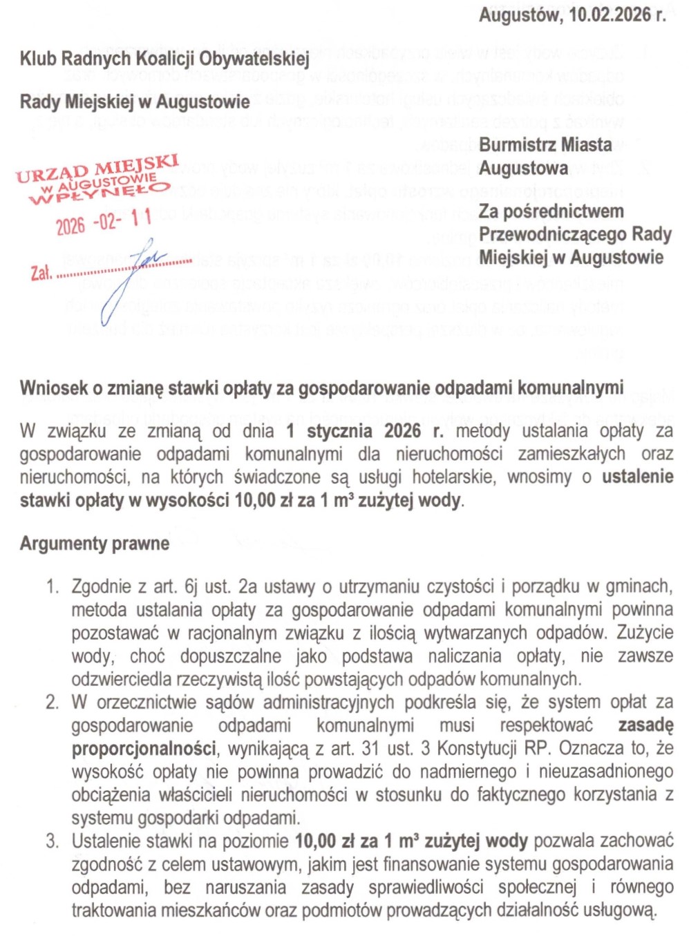 Wniosek klubu radnych Koalicji Obywatelskiej: