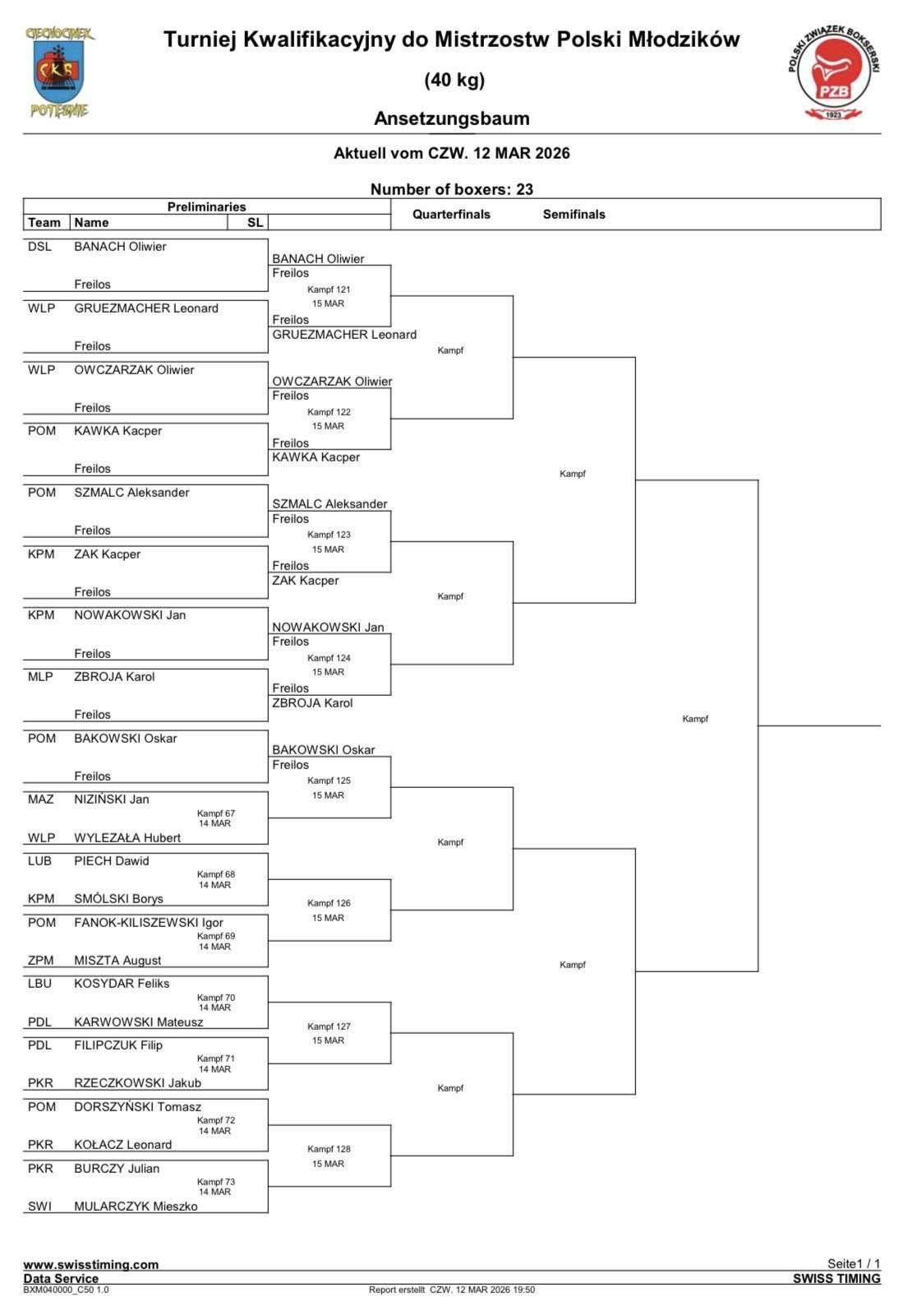 Przez trzy dni, w Ciechocinku rywalizowali najlepsi pięściarze poniżej 14 roku życia o promocję do krajowego czempionatu w boksie olimpijskim. Klub Sportowy „Sztorm” reprezentował Matusz Karwowski, który niedawno wywalczył tytuł Mistrza Województwa w Łomży, a w Ciechocinku wygrał wszystkie walki i zdobył upragnioną kwalifikację. Podopieczny trenera Piotr Rułkowskiego nie miał łatwego zadania, bo boksował w najliczniej obsadzonej kategorii wagowej, gdzie startowało 23 zawodników. Mateusz Karwowski w pierwszej walce trafił na zawodnika Kadry Narodowej Młodzików, a w drugiej zaś sprostał rywalowi z Rzeszowskiego Klubu Bokserskiego „Wisłok”. „Sztorm” dziękuje rodzicom Mateusza za wsparcie, Mateuszowi Mastynie za pomoc w wyjeździe do Ciechocinka i Gabinetowi Wierzbna za profesjonalną odnowę biologiczną.